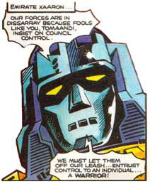 Emirate Xaaron was one of the more pro-active members of the Autobot Council of