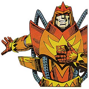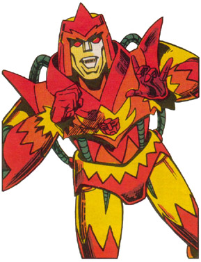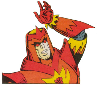 When Flame's experiments went a little astray and there was a massive explosion, the Autobots found no trace of the mad scientist and presumed he was as dead as a doornail. He wasn't. (People are never dead in comic-books if you can't find their remains. The Autobot council of Elders should have known better. Well, okay. Emirate Xaaron should have know better.) In truth, the explosion had thrown Flame clear, and uncovered the entrance to Megatron's ancient underground fusion reactor. The one the Decepticon had intended to use to rocket Cybertron around the universe blasting things.