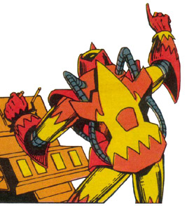 Flame played the villain in the trilogy of stories, City of Fear, Legion of the Lost, and Meltdown. Perhaps interestingly (then again, maybe not), even though he was the villain responsible for the conflict in City of Fear, he didn't have a personal appearance in that story. This alone makes Flame unique among Obscure Transformers.