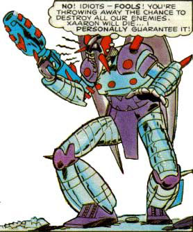 I mean, he kills Impactor, leader of the Wreckers. At this point, he should be running off to tell his friends. Sure, it's no Emirate Xaaron, but is IS the Leader of the Autobots' most powerful strike force. But instead, Macabre chucks a tantrum (no the Predacon...). He gets all upset, because he didn't get to kill Xaaron. In the process he reveals himself to the Autobots, and then he's dead.